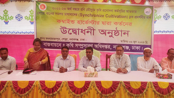 ঢাকার নবাবগঞ্জ উপজেলায় ২০২২-২৩ অর্থ বছরে রবি মৌস‚মে কৃষি প্রণোদনা কর্মস‚চীর আওতায় বোরো ধানের বøক প্রদর্শনীর ধান কম্বাইন্ড হার্ভেস্টার দ্বারা কর্তনের উদ্বোধন করা হয়েছে। মঙ্গলবার দুপুরে উপজেলার শোল্লা ইউনিয়নের মদনমোহনপুর মিতালী সংসদের মাঠে এ অনুষ্ঠান করা হয়।