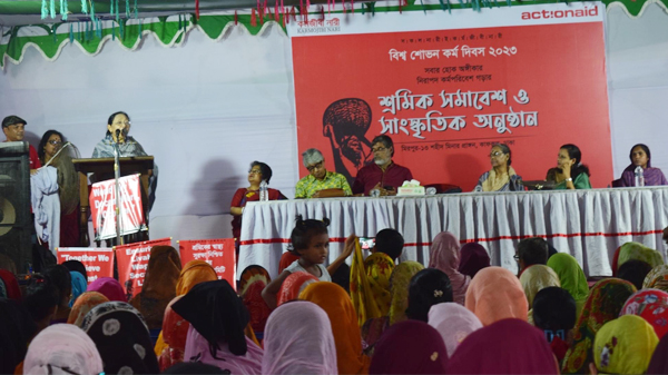 গার্মেন্ট শ্রমিক নেত্রী রহিমা বেগমের সভাপতিত্বে শ্রমিক সমাবেশে স্বাগত বক্তব্য দেন কর্মজীবী নারীর অতিরিক্ত নির্বাহী পরিচালক সানজিদা সুলতানা। এতে অতিথি ছিলেন জাতীয় নারী জোটের আহ্বায়ক ও সংরক্ষিত সংসদ সদস্য আফরোজা হক রিনা ও একশনএইড বাংলাদেশ-এর ম্যানেজার মরিয়ম নেছা।