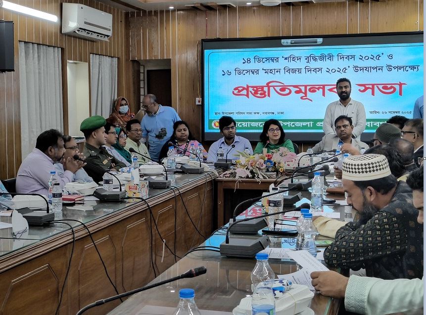 ঢাকার নবাবগঞ্জ উপজেলায় বিভিন্ন শ্রেণীপেশা, সাংস্কৃতিক ব্যক্তিত্ব ও রাজনীতিক ব্যক্তিদের সাথে নিয়ে ১৪ ডিসেম্বর শহীদ বুদ্ধিজীবী দিবস ও ১৬ ডিসেম্বর মহান বিজয় দিবস উদযাপন উপলক্ষ্যে প্রস্তুতিমূলক সভা অনুষ্ঠিত হয়েছে। বুধবার দুপুরে উপজেলা পরিষদ সভা কক্ষে এ অনুষ্ঠানের আয়োজন করেন নবাবগঞ্জ উপজেলা প্রশাসন।