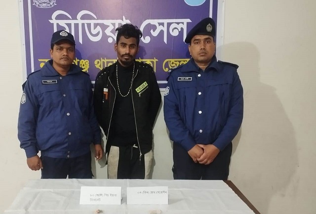 ঢাকার নবাবগঞ্জে বান্দুরা ইউনিয়নের নয়ানগর গ্রামে অভিযান পরিচালনা করে হেরোইন ও ইয়াবাসহ বিপ্লব হোসেন (২৮) নামে একাধিক মামলার এক আসামীকে গ্রেপ্তার করেছে পুলিশ। গ্রেপ্তারকৃত বিপ্লব ওই এলাকার আক্কেল আলী চৌকিদারের ছেলে।