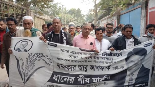 এসময় আগামী ১২ ফেব্রুয়ারি ঢাকা-১ আসনের ধানের শীষের প্রার্থী খন্দককার আবু আশফাককে ভোট দেওয়ার আহবান জানিয়ে লিফলেট বিতরণ করেন নেতাকর্মীরা।