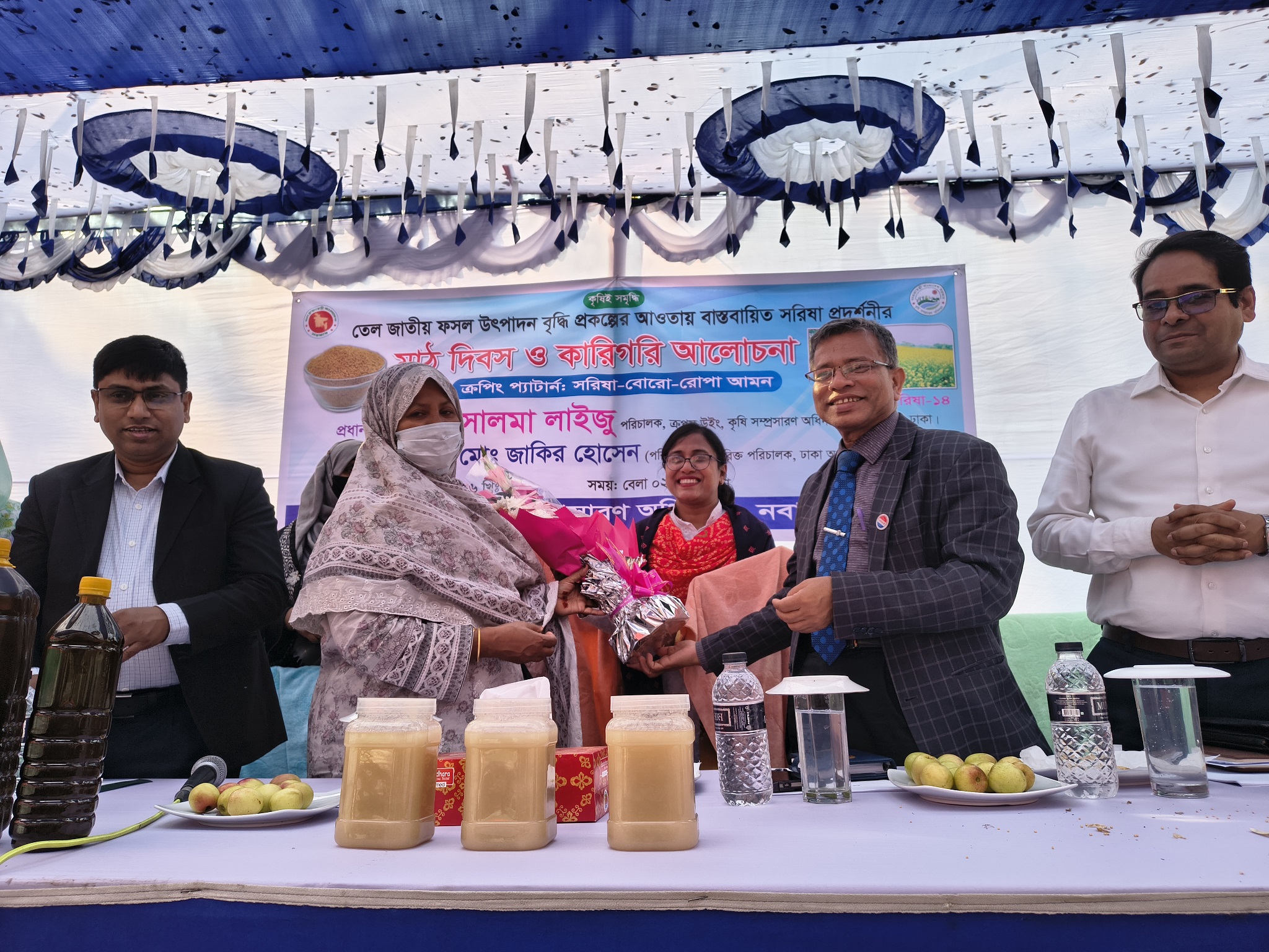 তেল জাতীয় উৎপাদন বৃদ্ধি প্রকল্পের আওতায় ঢাকার নবাবগঞ্জে কৃষক কৃষাণীদের নিয়ে কৃষকের মাঠ দিবস ও কারিগরি আলোচনা সভা করা করা হয়েছে। নবাবগঞ্জ উপজেলা কৃষিসম্প্রসাণ অধিদপ্তরের আয়োজনে বুধবার বিকেলে উপজেলার শোল্লায় এ অনুষ্ঠান করা হয়।