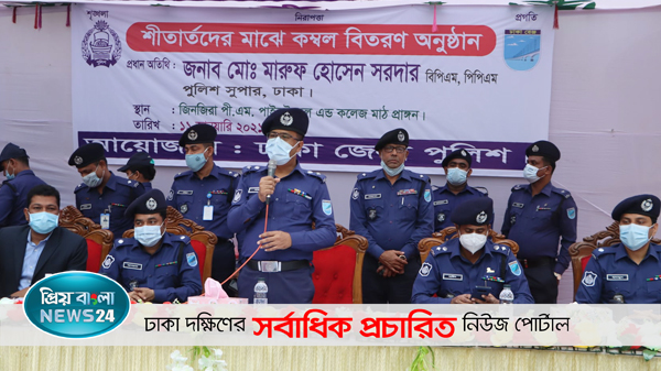 প্রতি বছরের ন্যায় এবারও ঢাকা জেলা পুলিশের উদ্যোগে গরিব, দুস্থ ও অসহায় শীতার্ত পরিবারের মাঝে কম্বল বিতরণ করা হয়। সোমবার কেরাণীগঞ্জ জিনজিরা পী.এম পাইলট স্কুল এন্ড কলেজ মাঠে প্রায় ৬০০ পরিবারের মাঝে এ কম্বল বিতরণ করা হয়।