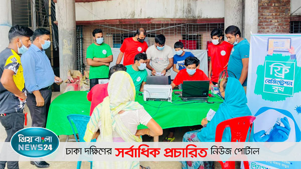 প্রথমদিনে দোহারে ২৩৭ জন টিকা প্রত্যাশীকে ফ্রি রেজিষ্ট্রেশন সেবা দিল ‘প্রিয়সংঘ’