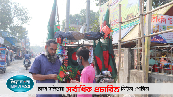 ১৬ ডিসেম্বর স্বাধীনতার সুবর্ণ জয়ন্তীকে সামনে রেখে ঢাকার নবাবগঞ্জ উপজেলার পাড়া-মহল্লা ও স্কুল-কলেজ থেকে শুরু করে গ্রামের অলিগলিতে মৌসুমি পতাকা বিক্রেতারা হাঁকডাক দিয়ে বিক্রি করছেন দেশের লাল-সবুজের জাতীয় পতাকা।
