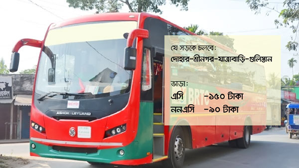 ৩ ফেব্রুয়ারি সোমবার থেকে দোহার-শ্রীনগর-ঢাকা সড়কে চলবে বিআরটিসি বাস। গত ২৫ জানুয়ারি শনিবার প্রধানমন্ত্রীর শিল্প ও বিনিয়োগ বিষয়ক উপদেষ্টা সালমান এফ রহমান এ বাস সার্ভিসের আনুষ্ঠানিক উদ্বোধন করলেও আসছে সোমবার থেকে মূলত দোহার সড়কে চলাচল করবে বিআরটিসি এসি ও ননএসি বাস।