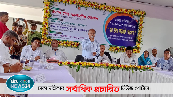 বাজেট ঘোষণা অনুষ্ঠানে প্রধান অতিথি হিসেবে উপস্থিত ছিলেন দোহার উপজেলা পরিষদের চেয়ারম্যান মোঃ আলমগীর হোসেন।