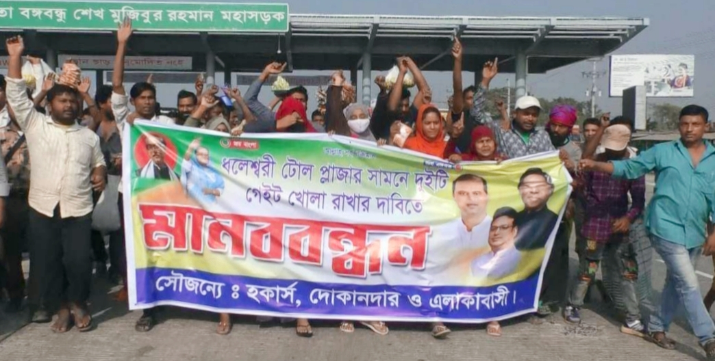 ঢাকা মাওয়া মহাসড়কের ধলেশ্বরী টোল প্লাাজা এলাকায় মহাসড়কে যাতায়াতের জন্য ব্রিজের দুই পাশে দু'টি গেট খুলে দেওয়া দাবিতে মানববন্ধন করেছে স্থানীয় জনসাধারণ , হকার ও দোকানদাররা। রবিবার দুপুরে বঙ্গবন্ধু মহাসড়কের…