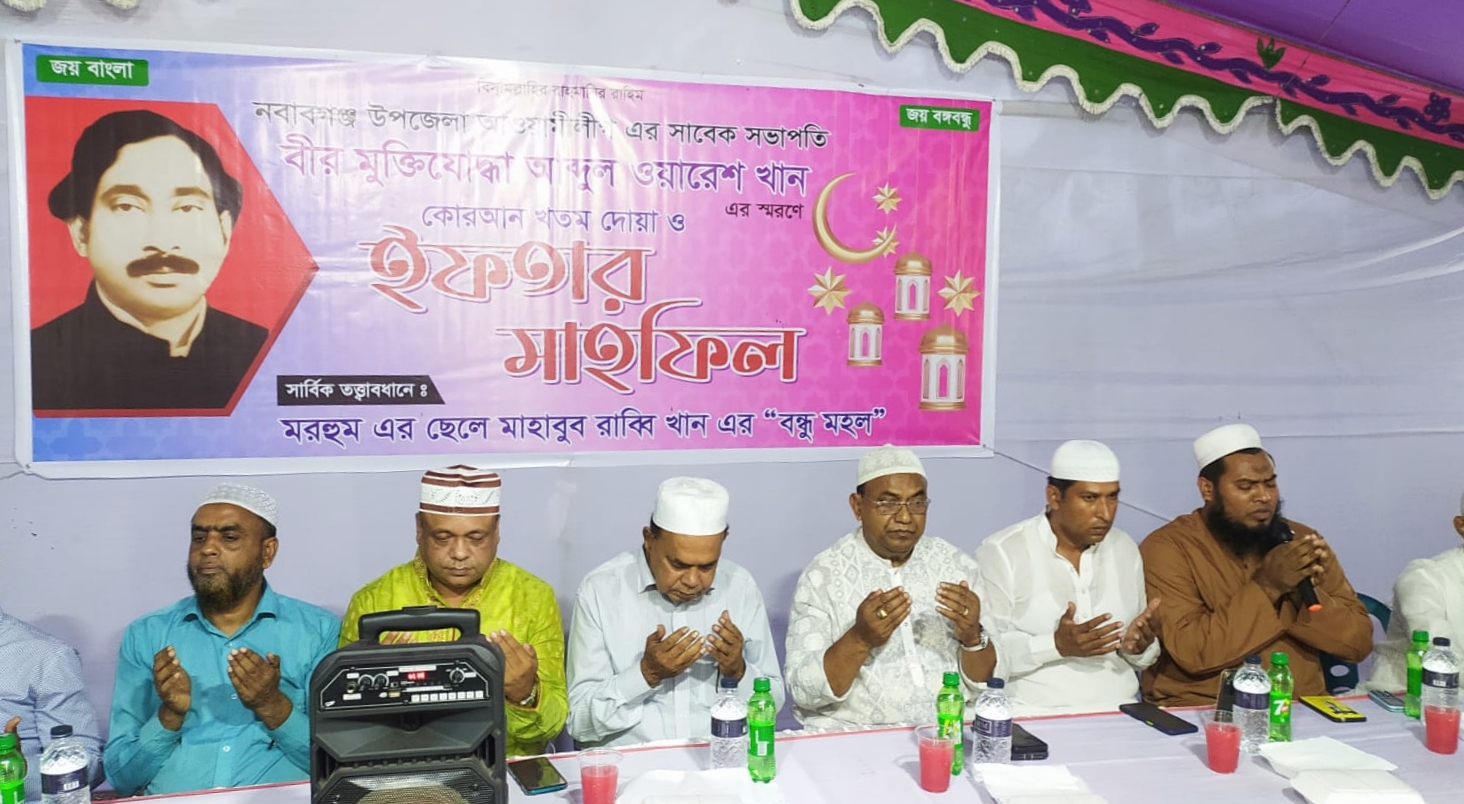 ঢাকার নবাবগঞ্জে উপজেলা আওয়ামী লীগের সাবেক সভাপতি বীর মুক্তিযোদ্ধা আব্দুল ওয়ারেশ খান স্মরণে কোরআন খতম, ইফতার ও দোয়া মাহফিল অনুষ্ঠিত হয়েছে। বৃহস্পতিবার সন্ধ্যায় উপজেলা ঢাকবাংলো প্রাঙ্গণে এ অনুষ্ঠান করা হয়।…