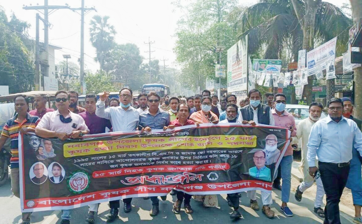 ১৯৯৫ সালের ১৫ মার্চ “দেশের বিভিন্ন স্থানে, সার. কিটনাশক নিয়ে আন্দোলনরত কৃষকদের” হত্যার প্রতিবাদে ও কৃষক হত্যা দিবস উপলক্ষ্যে ঢাকার নবাবগঞ্জ উপজেলা কৃষক লীগ শোক র্যালি ও আলোচনা সভা করেছে।…