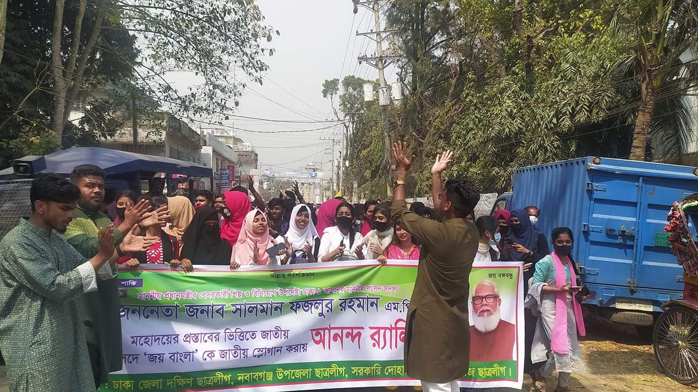 প্রধানমন্ত্রীর শিল্প ও বিনিয়োগ উপদেষ্টা দোহার-নবাবগঞ্জ ঢাকা-১ আসনের সংসদ সদস্য সালমান এফ রহমান এর প্রস্তাবনায় “জয় বাংলা” জাতীয় শ্লোগান হিসেবে মন্ত্রী পরিষদ বিভাগ প্রজ্ঞাপন জারি করায় ঢাকার নবাবগঞ্জে উপজেলা ও…