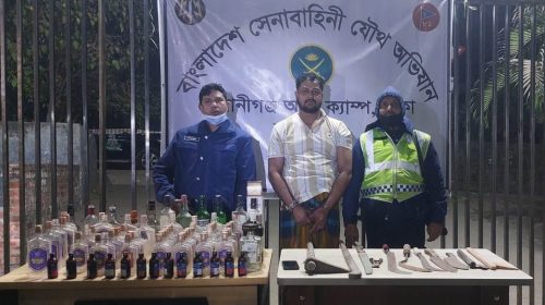 ঢাকার দক্ষিণ কেরানীগঞ্জের ইকুরিয়া বেপারীপাড়া এলাকায় অভিযান চালিয়ে ফেনসিডিল, ইম্পিরিয়াল হুইস্কি, বিদেশি মদ ও একাধিক দেশীয় অস্ত্রসহ কুখ্যাত সন্ত্রাসী চক্রের সক্রিয় সদস্য মো. আরমানকে গ্রেপ্তার করেছে সেনাবাহিনী। সোমবার গভীর রাত…